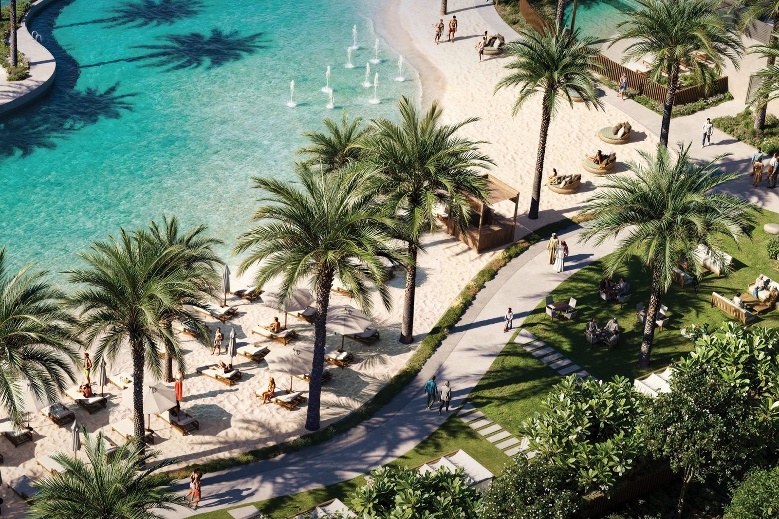 Every apartment and townhouse is designed to maximize light, space, and functionality. The open-plan living and dining areas flow seamlessly into modern kitchens equipped with top-tier finishes. Expansive balconies offer serene views of the water and the city’s skyline, giving residents a daily connection with Dubai’s iconic beauty.