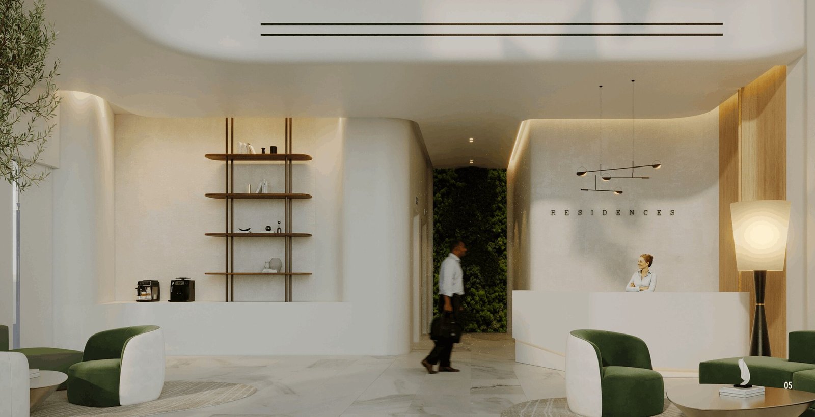 The tower features a spacious and elegantly designed lobby that welcomes residents and guests with modern finishes and comfortable seating, offering a perfect first impression.