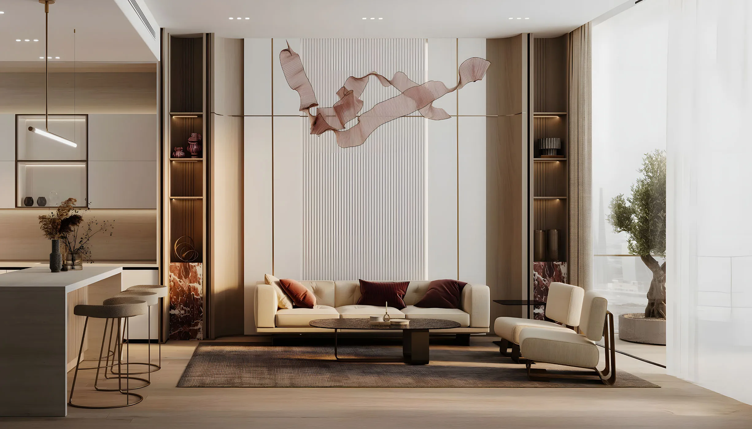 - Radial layouts, floor-to-ceiling windows, and panoramic views