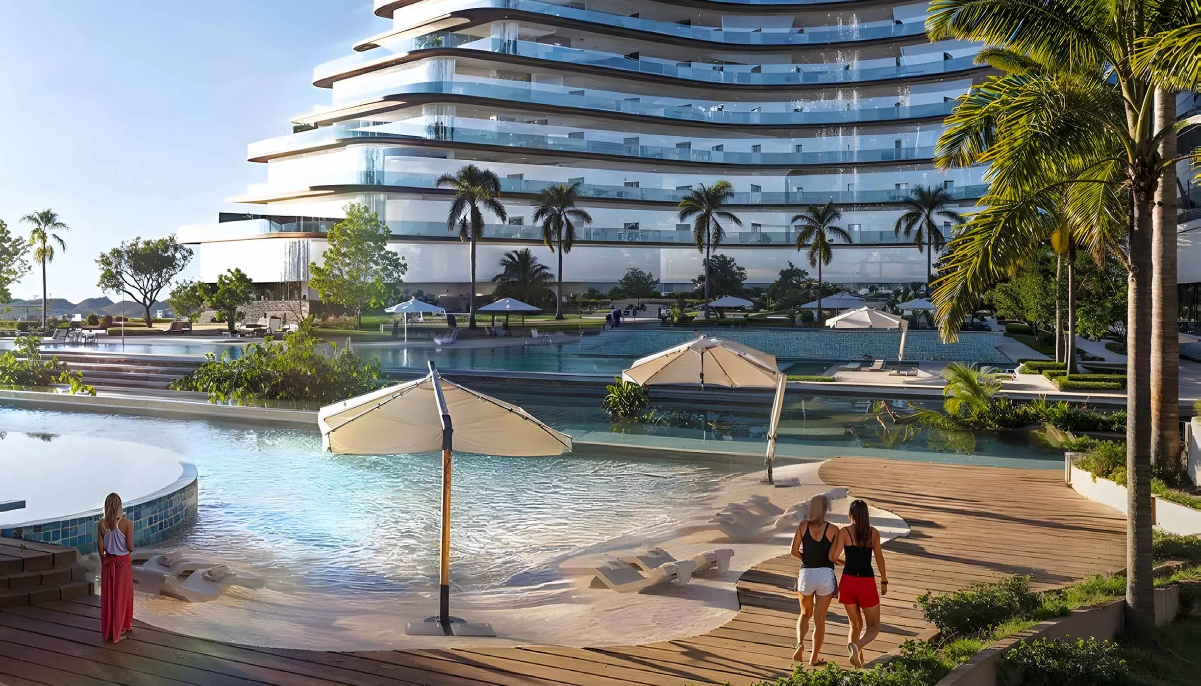 - Podium-level retail and resort-style amenities