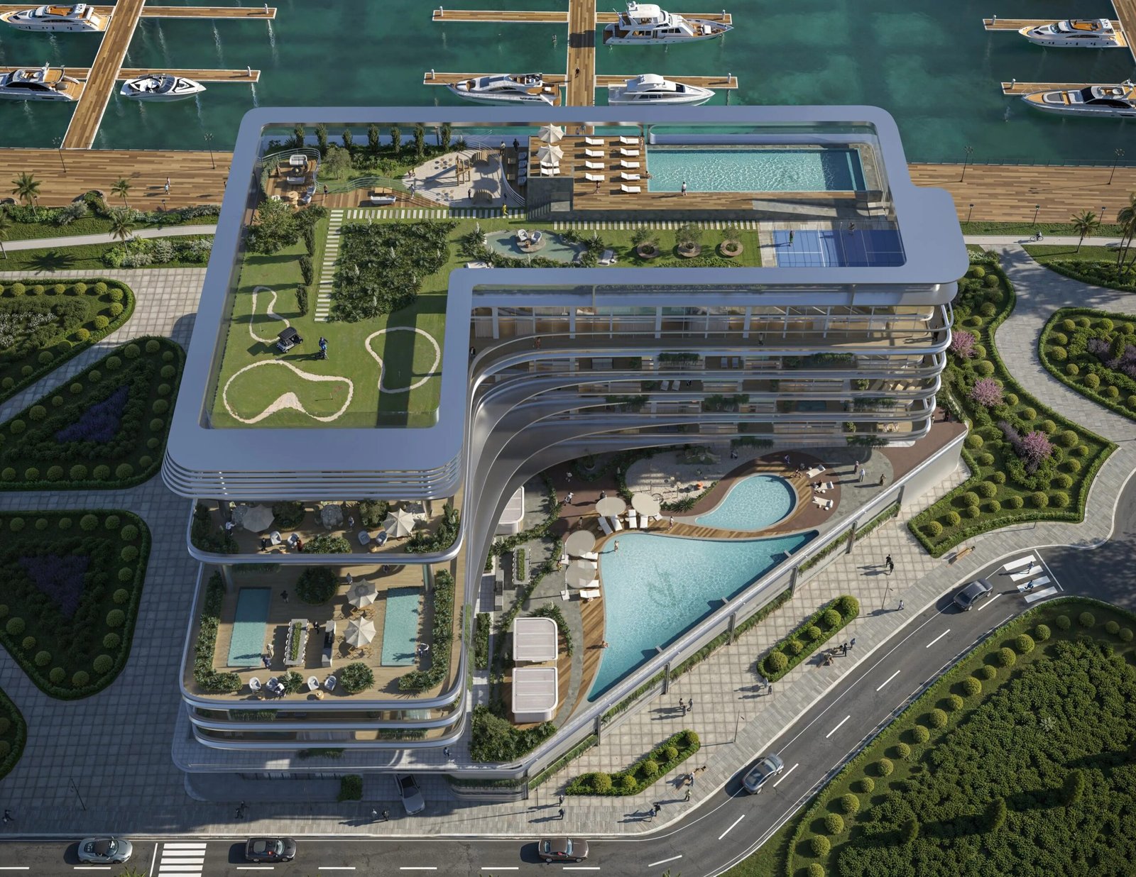 The master plan integrates lush green gardens, open spaces, and water features that bring a resort-style ambiance to urban living. The landscaped areas are designed to encourage relaxation and social interaction, while the overall layout ensures convenient access to amenities and leisure spaces.