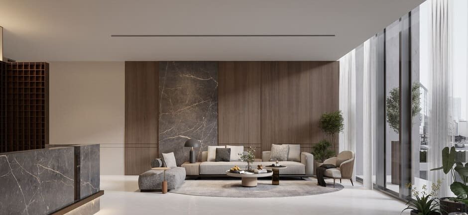 The building’s exterior is sleek, reflecting the urban sophistication of Dubai’s rapidly evolving skyline. Beyond aesthetics, the project integrates modern construction solutions to enhance energy efficiency, soundproofing, and security.