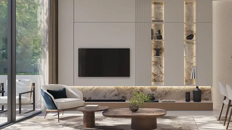 Amenities are designed to provide a resort-style living experience, with multiple pools, landscaped courtyards, wellness zones, and family-focused recreation areas. Its location in Majan ensures excellent connectivity to Sheikh Mohammed Bin Zayed Road, placing Downtown Dubai, Burj Khalifa, and Dubai International Airport within 20–22 minutes.