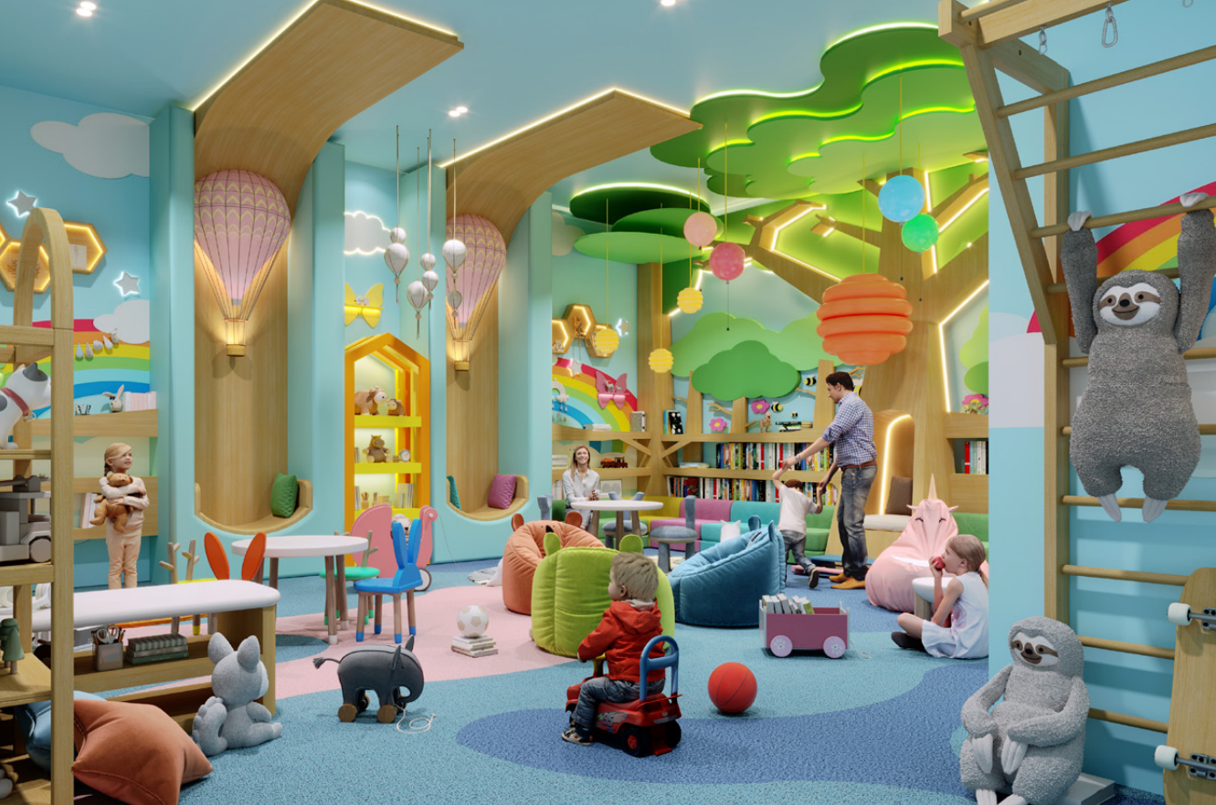 • Resort-style amenity floor with cinema, waterpark, sky pool, and mini-golf.