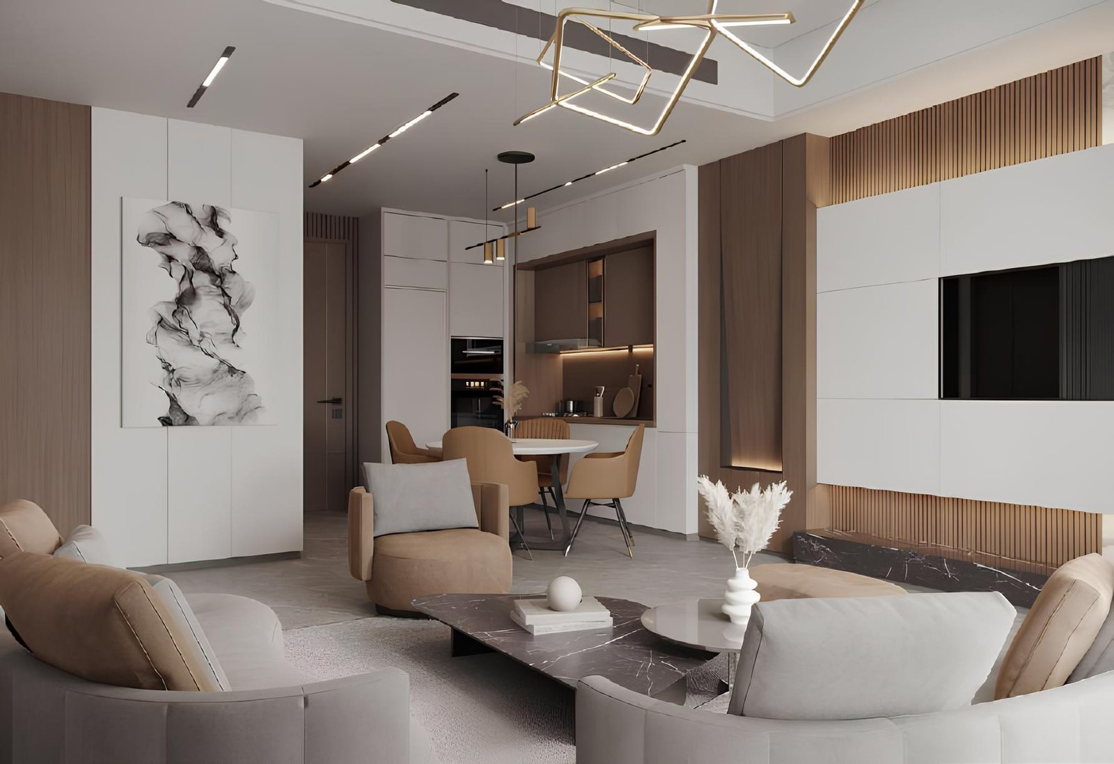 Residences come fully furnished with smart home integration, giving residents seamless control over lighting, climate, and security. Interiors feature bright tones, modern layouts, and panoramic windows, maximizing space and natural light.