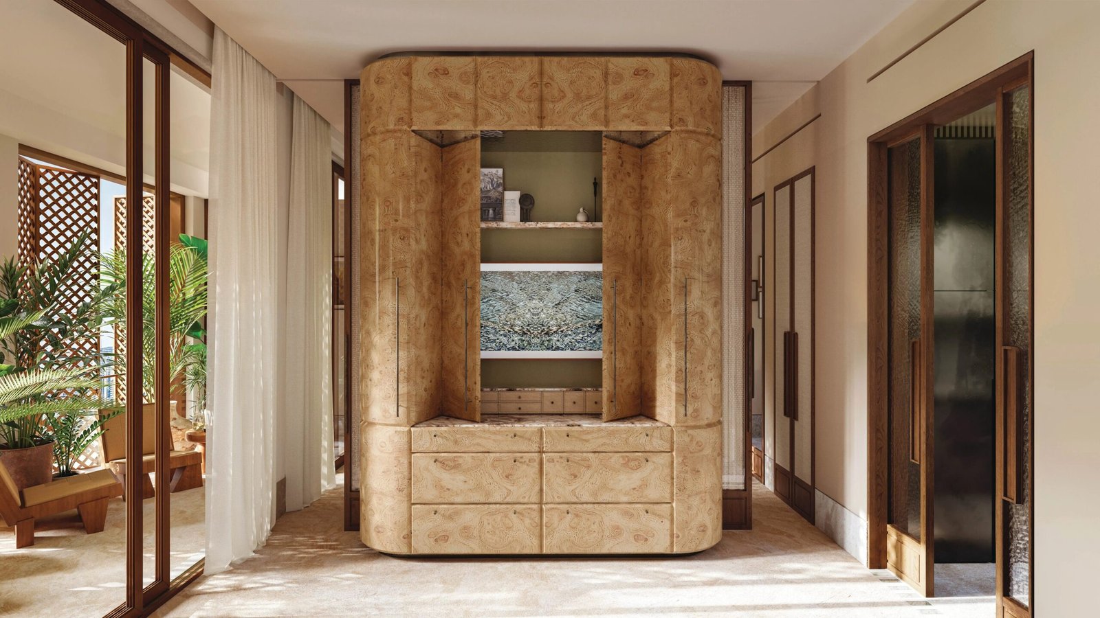 All units feature expansive layouts, panoramic floor-to-ceiling glazing, premium natural materials, and thoughtfully designed living spaces to ensure both style and comfort. The residences are fully furnished with luxury interiors curated to match the aesthetic standards of LUX hospitality.