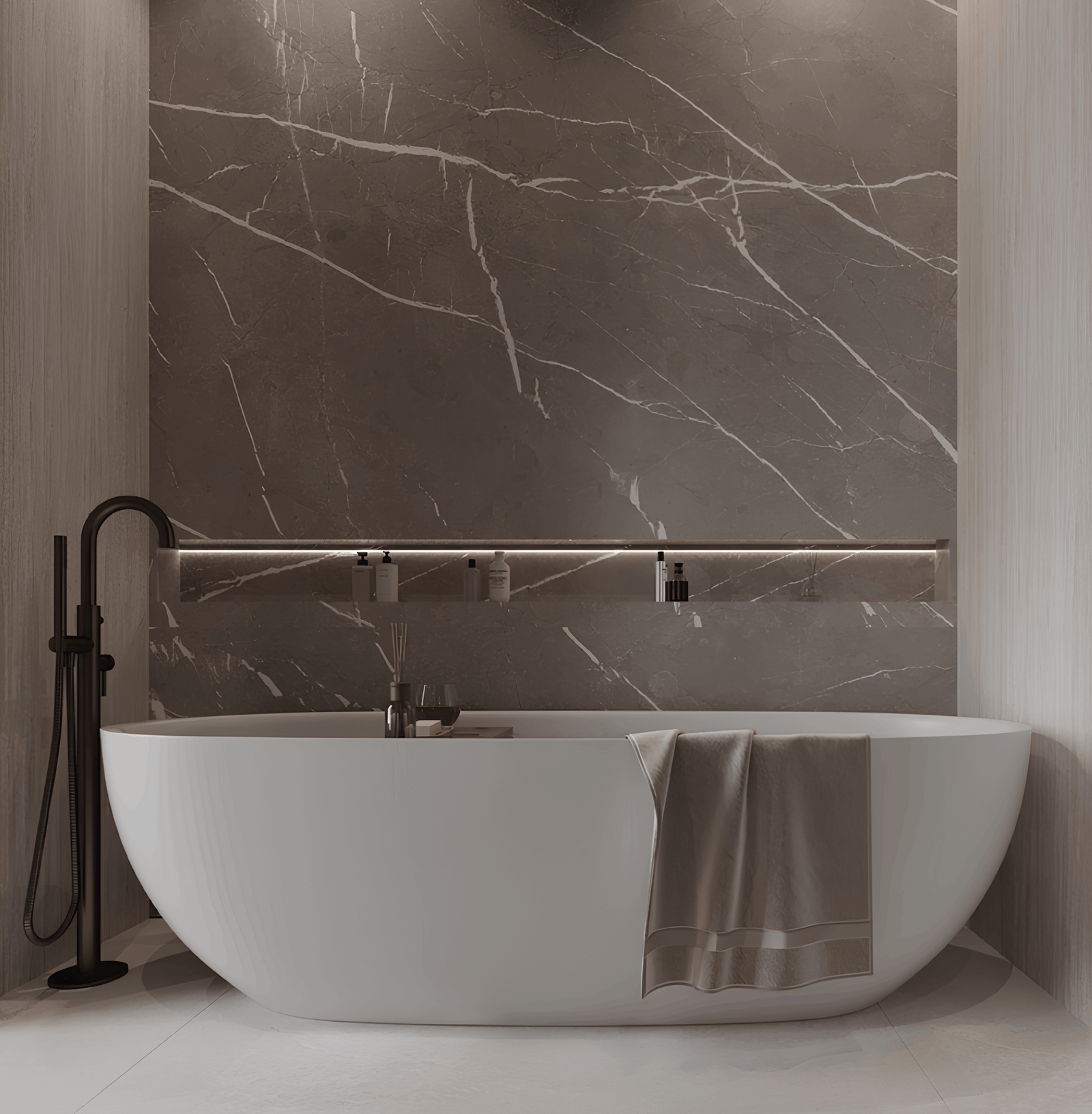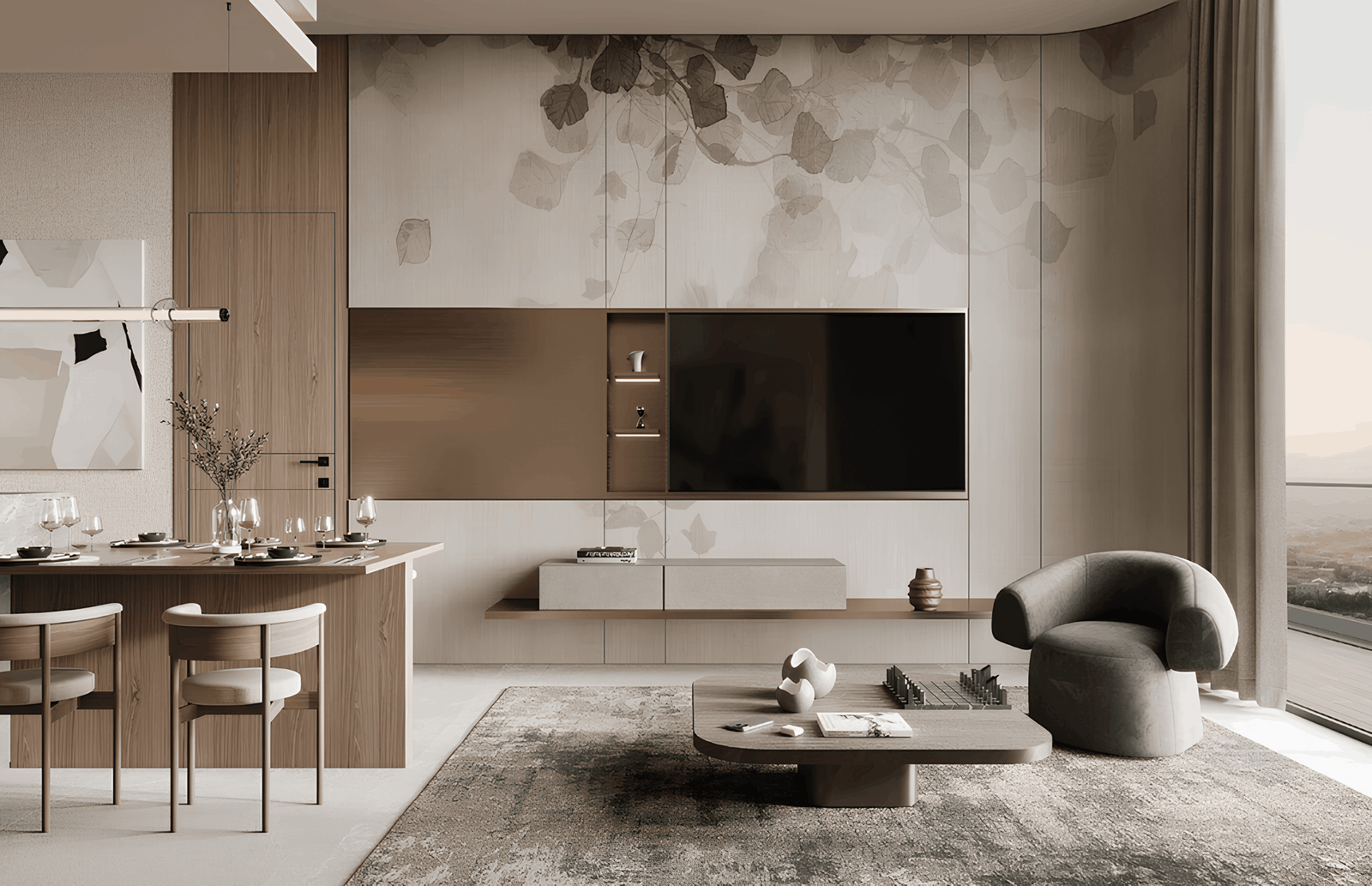 The development offers studios and 1-bedroom apartments with premium finishes, natural textures, and smart home systems, providing both style and functionality.