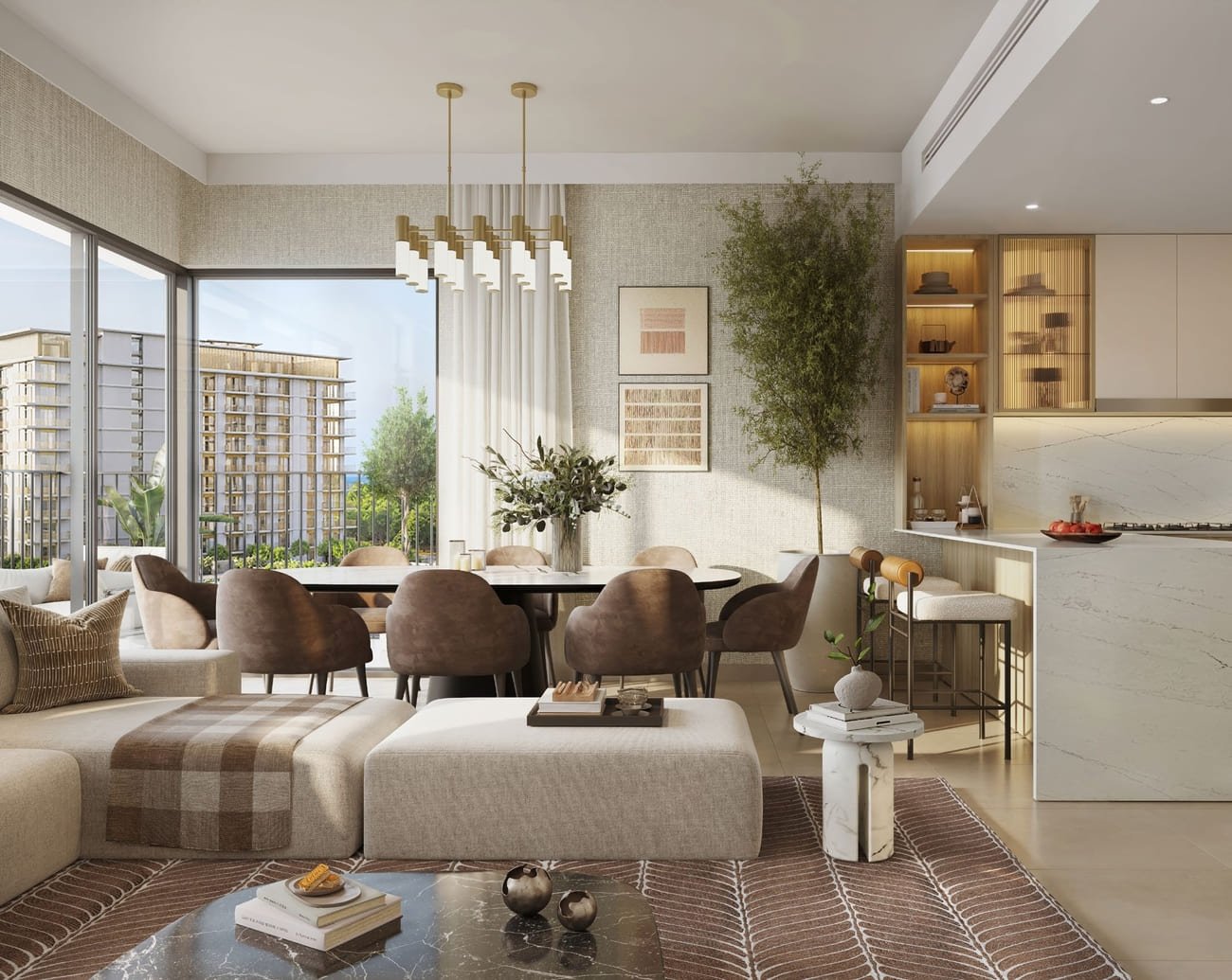 The architectural design of Golf Meadow blends contemporary style with timeless charm. Each unit boasts an earthy-toned façade and a soothing color palette, creating a warm, inviting atmosphere. Spacious interiors are enhanced with natural light, thanks to floor-to-ceiling windows that invite in the golden sunrises. Quiet alcoves provide the perfect retreat, offering peace and serenity within your own home. Golf Meadow features 1 to 3 bedroom apartments, each designed to maximize space while offering stunning views of the golf course.