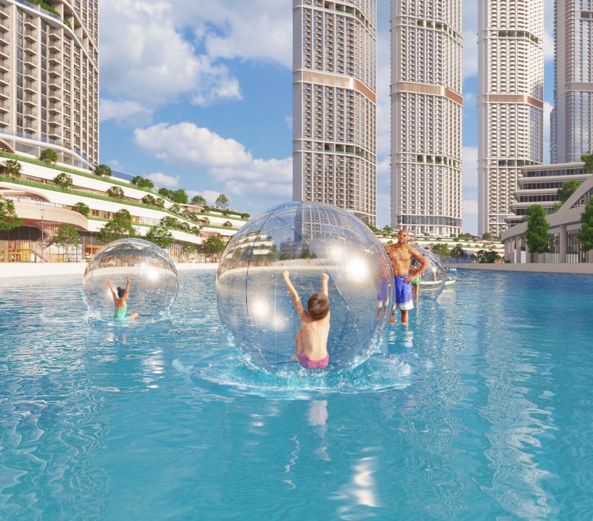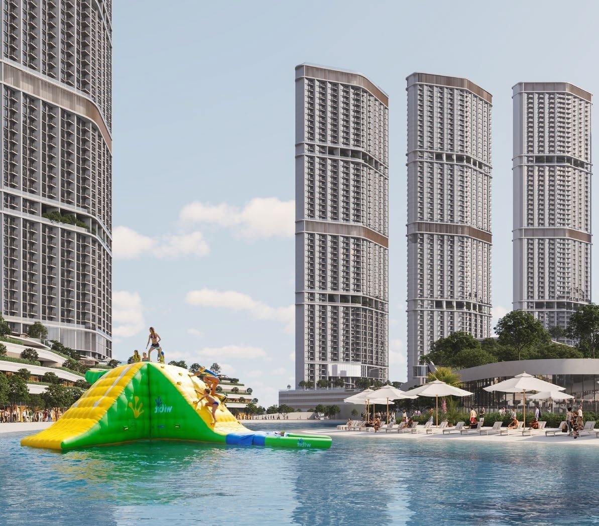 The towers are designed to provide privacy and comfort while connecting residents to nature and vibrant public spaces.