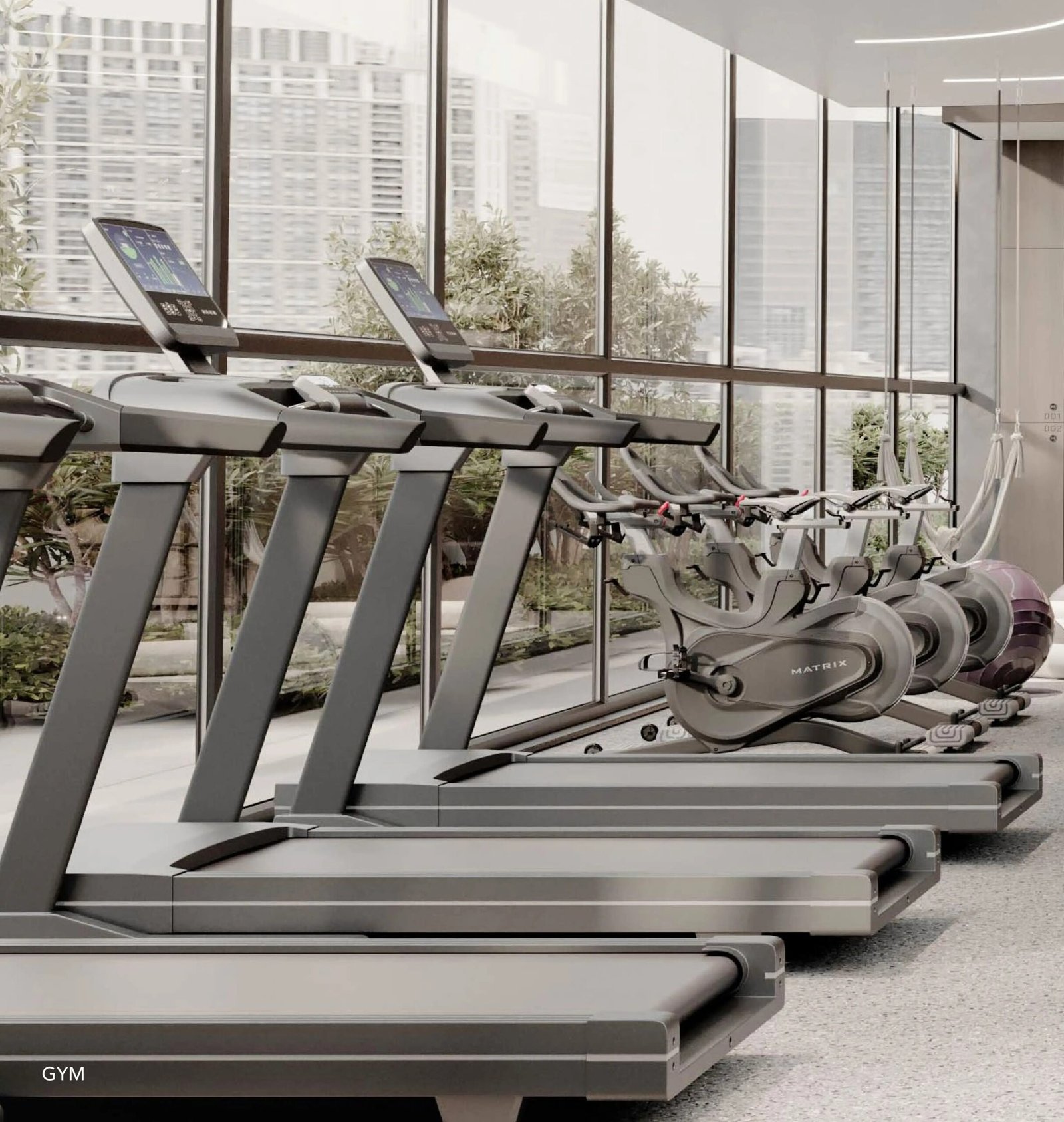A modern fitness center equipped with state-of-the-art machines, suitable for daily workouts and wellness routines.