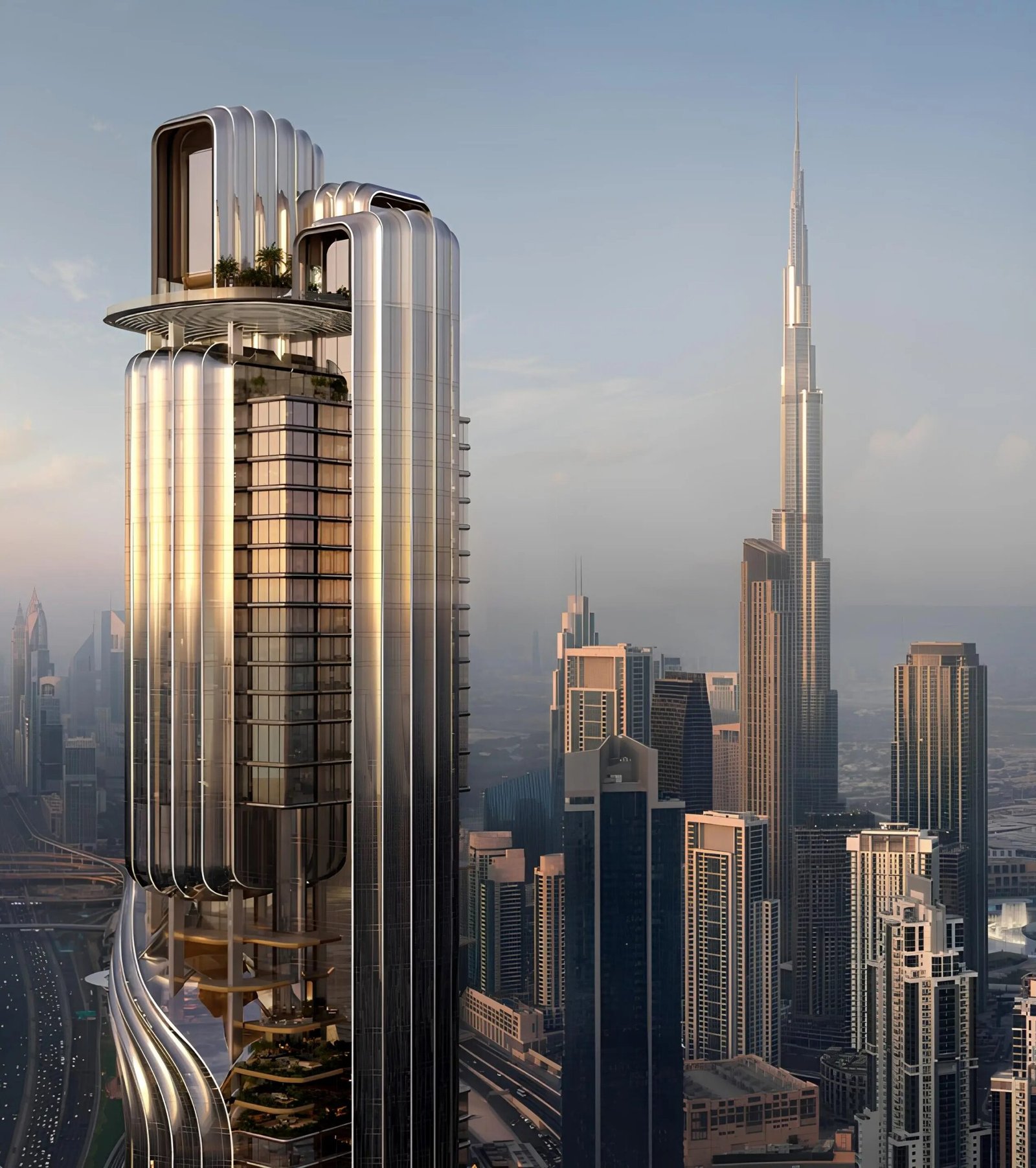 Lumena Alta is crafted to cater to Dubai’s evolving business landscape by offering a development that merges luxury and professional excellence. Rising elegantly in Business Bay, Lumena Alta stands as a symbol of modern architectural innovation. Its spiraling façade is engineered to mimic motion and capture sunlight from various angles, creating a dynamic appearance throughout the day. The architectural concept focuses on transparency, natural illumination, and spaciousness, ensuring users experience maximum comfort and productivity.