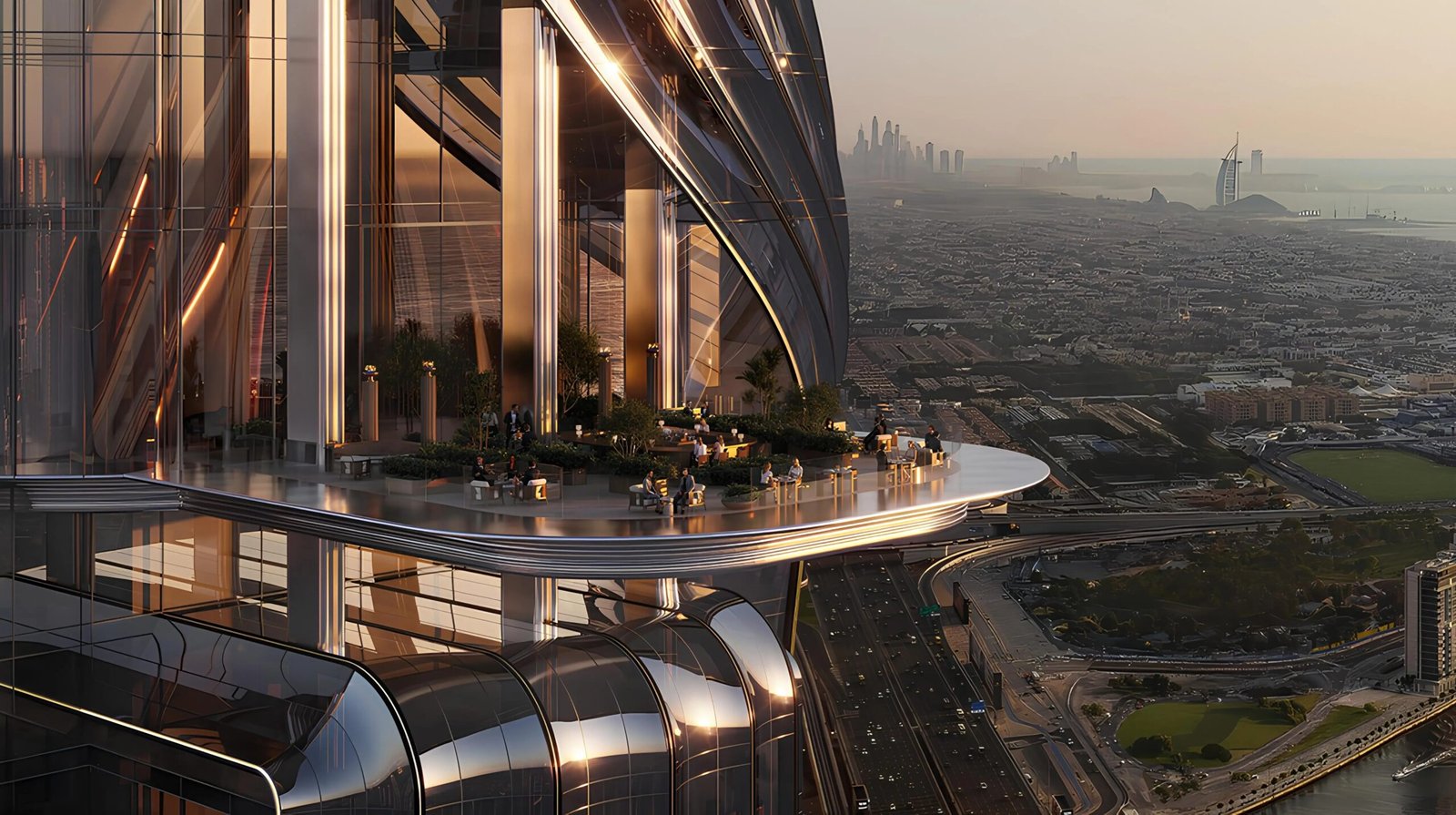 The interiors of Lumena Alta focus on elegance, transparency, and high functionality. Every corner is crafted with contemporary materials to enhance work productivity and visual openness. Its extravagant panoramic windows expand floor-to-ceiling, offering exceptional views of Downtown Dubai, Burj Khalifa, Burj Al Arab, and the stunning coastline of Dubai. With ultra-luxurious lounges, premium office setups, and dedicated recreational spaces, architecturally, Lumena Alta perfectly blends innovation and lifestyle.