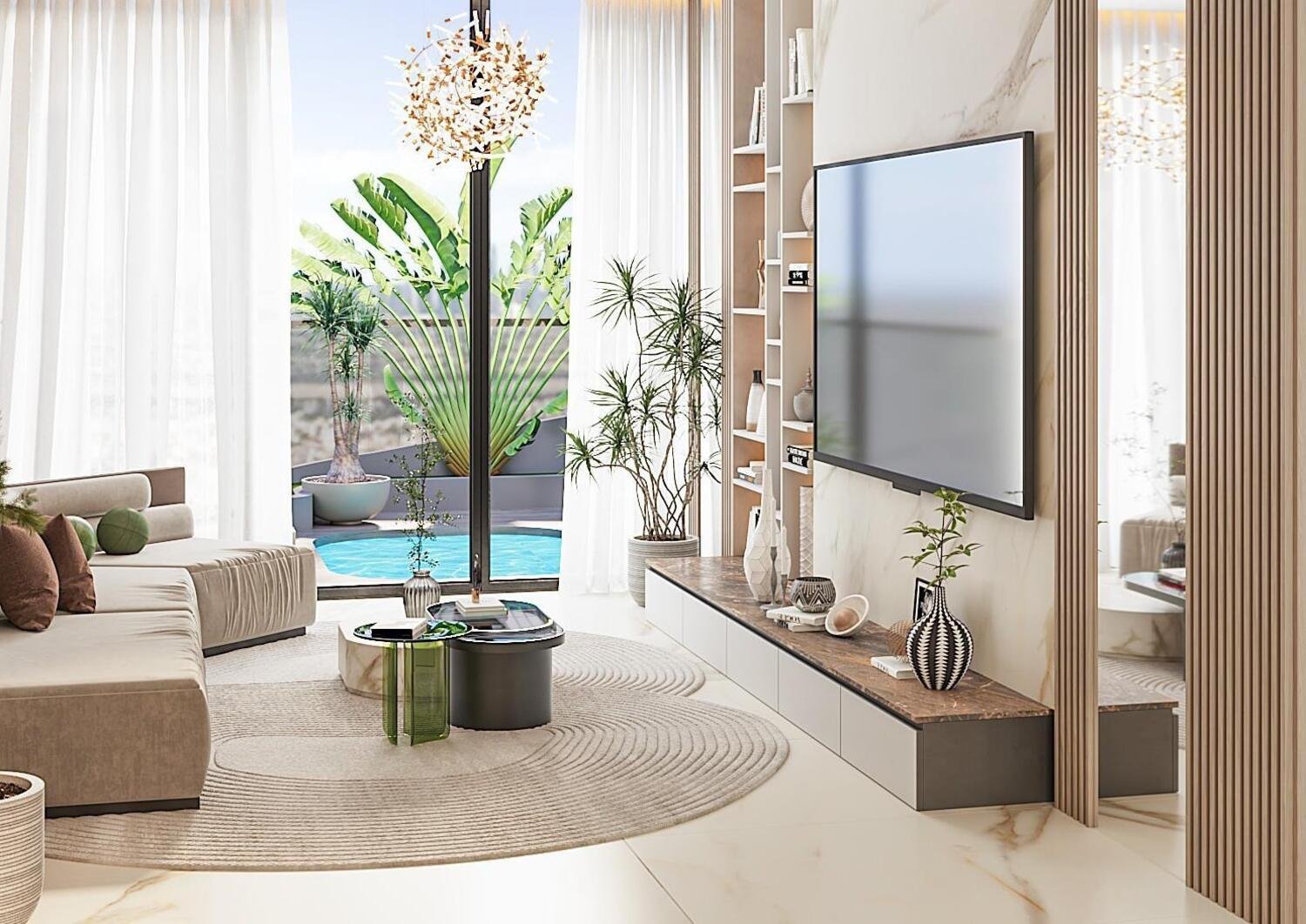 Each unit is delivered semi-furnished with built-in wardrobes and modern kitchens equipped with branded appliances, making them ready to move in upon completion.