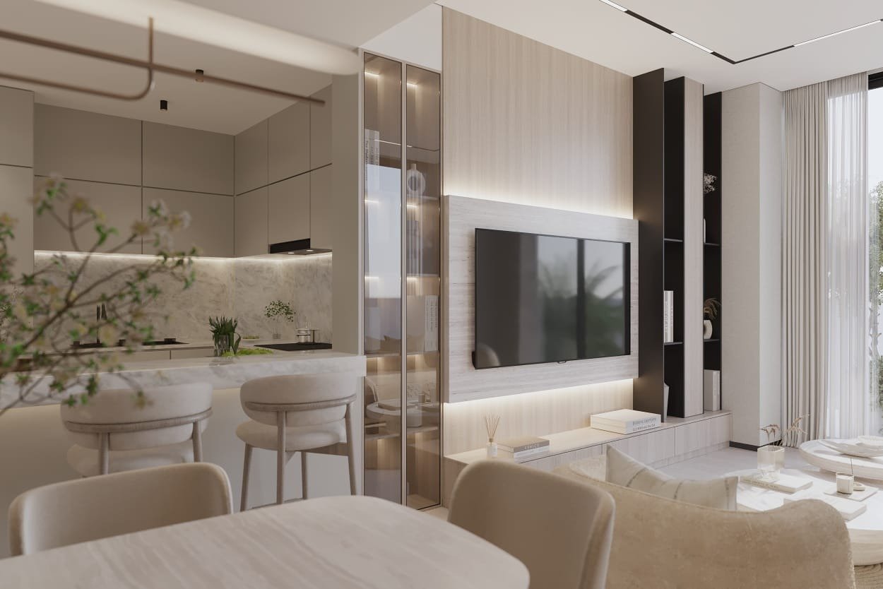 Manam Pearl is crafted to offer residents an elevated lifestyle experience by blending modern design with functional planning. The architectural style of Manam Pearl draws inspiration from the gentle curves and serene elegance of a natural pearl, creating a visually striking structure. Its light color palette and sleek lines give the building a warm yet premium presence, making it stand out among residential projects in the Al Furjan and Jebel Ali Village area.