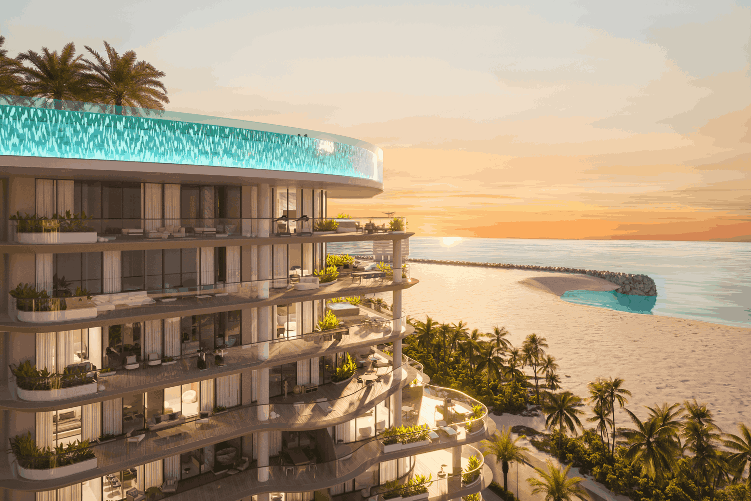The project emphasizes resort-style living, offering a balance of exclusivity and convenience with direct beach access, landscaped areas, and proximity to world-class hospitality destinations such as Rixos Bab Al Bahr, Movenpick Resort, and Hilton Marjan Island.