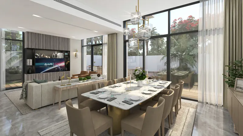 Murooj Al Furjan is a premium residential development by Nakheel, offering 4 and 5-bedroom villas set in the vibrant, green master community of Al Furjan. The name “Murooj,” meaning “green fields,” reflects the lush landscaping that complements the modern, timeless architecture.