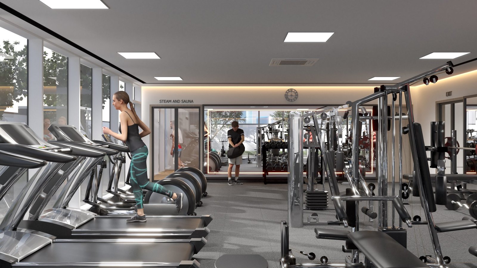 Indoor Gym: A fully equipped gymnasium allows residents to maintain their fitness routine within the comfort of their community.