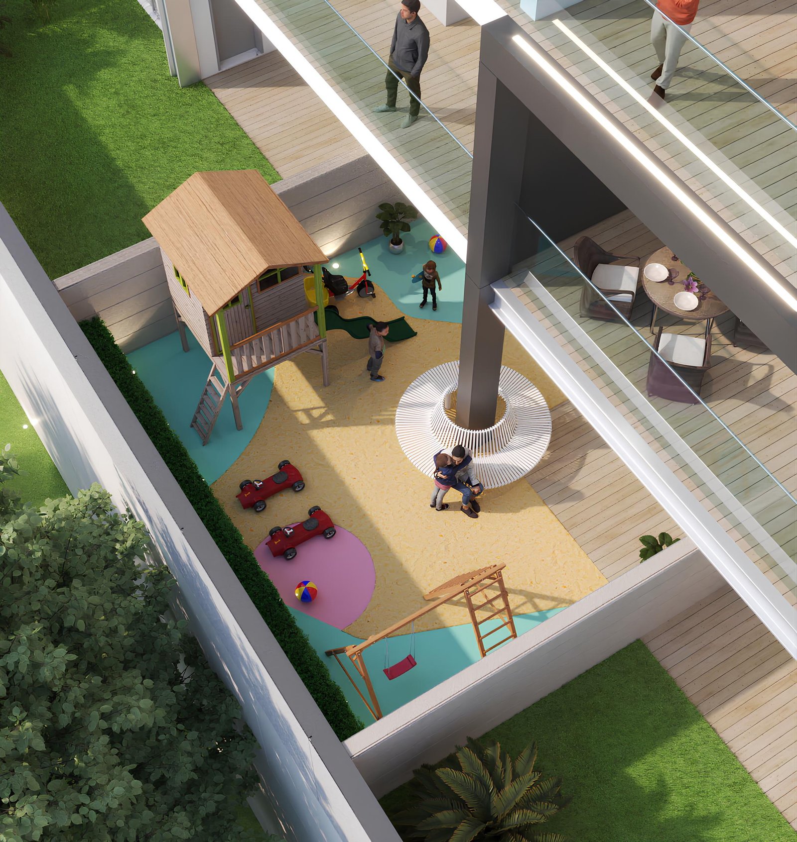Children’s Play Area: A safe and engaging play zone for children encourages outdoor activity and social development.