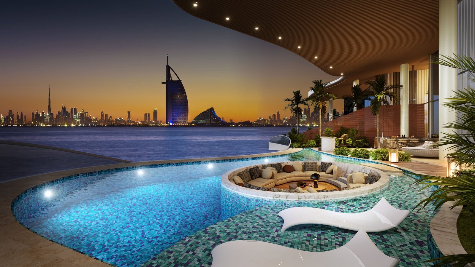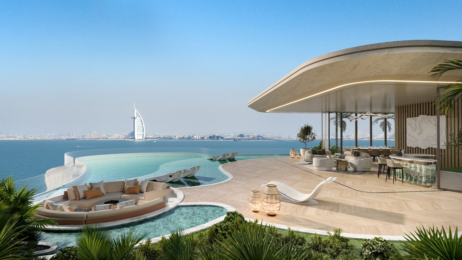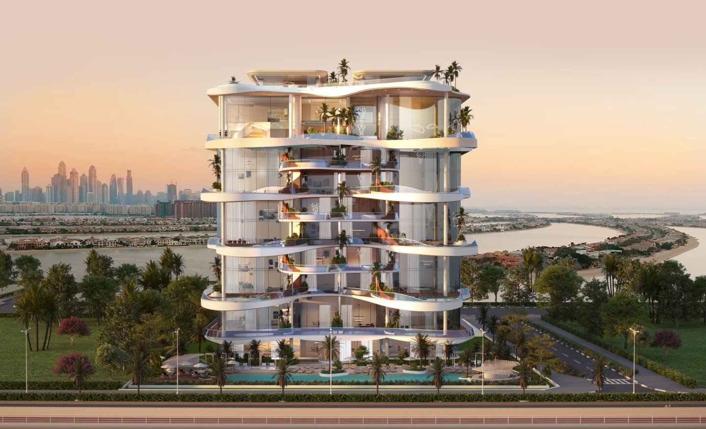 The project is characterized by its wave-like architecture, with pools and landscaped green terraces integrated into its design. Selected units feature private swimming pools, entertainment decks, and expansive terraces, providing uninterrupted views of Palm Jumeirah, Burj Al Arab, and the Dubai skyline.