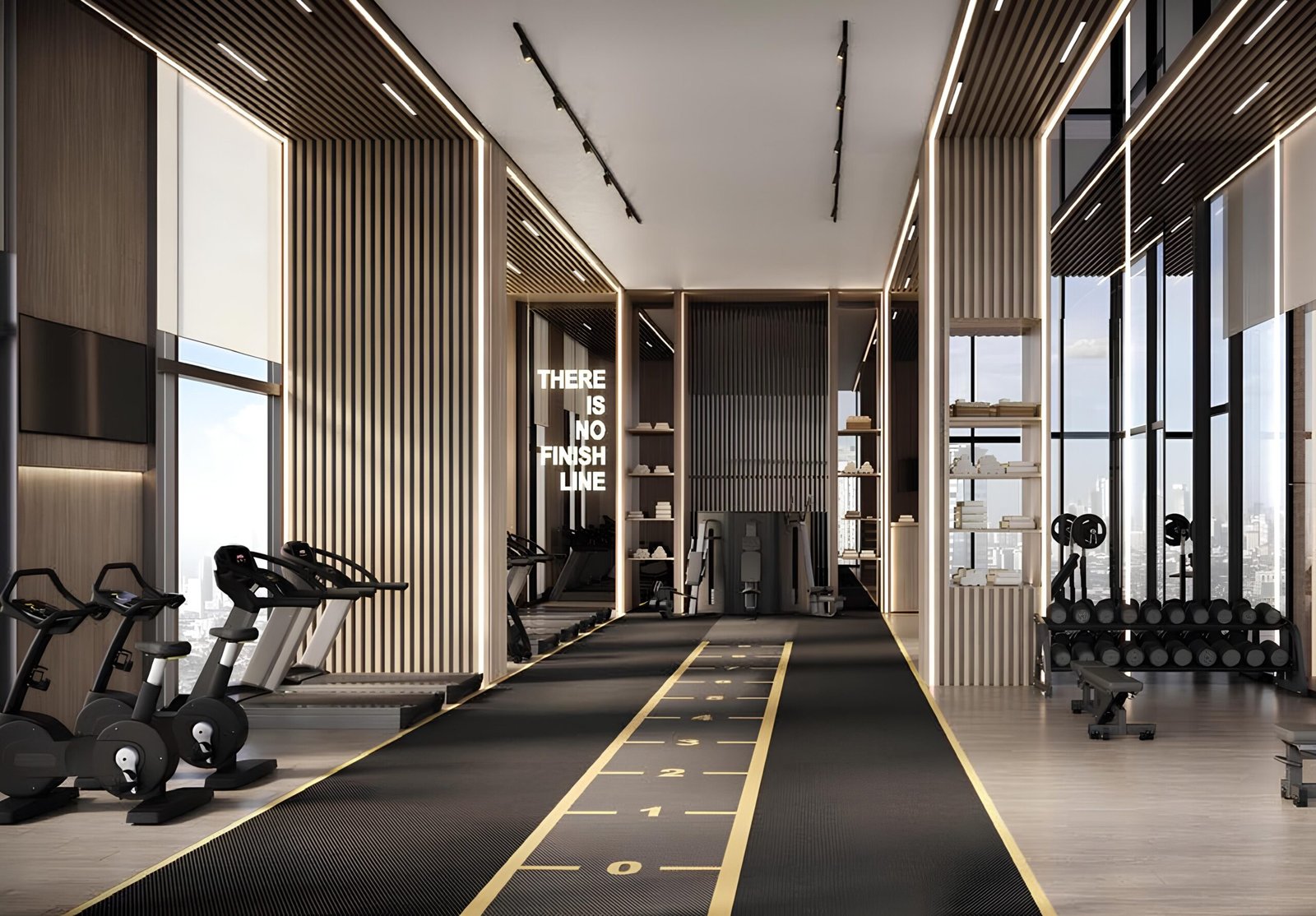 A fully equipped gym featuring modern equipment for strength and cardio training.