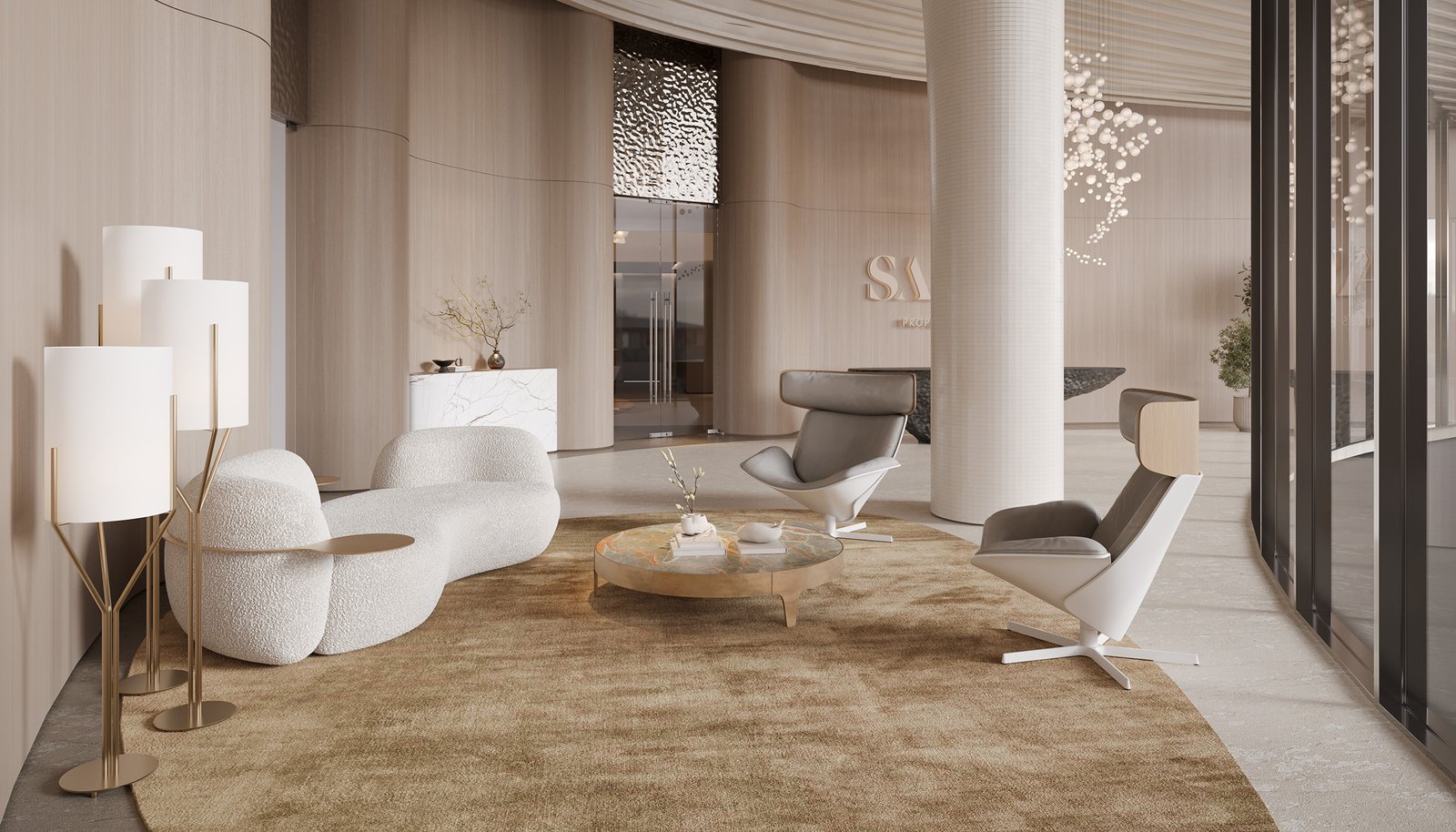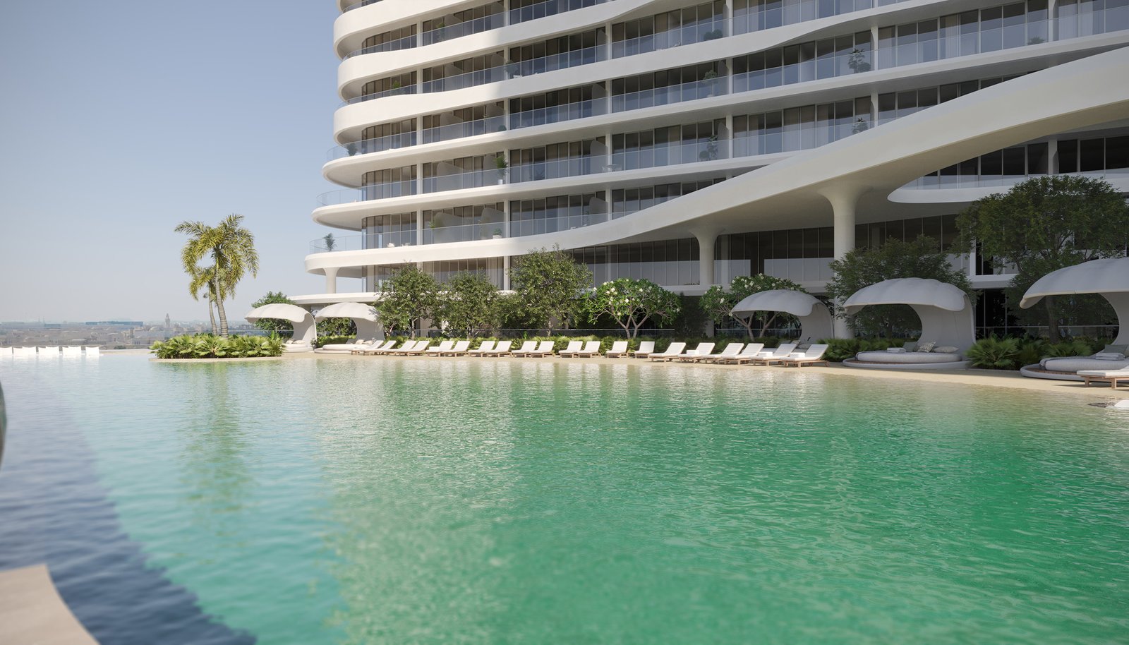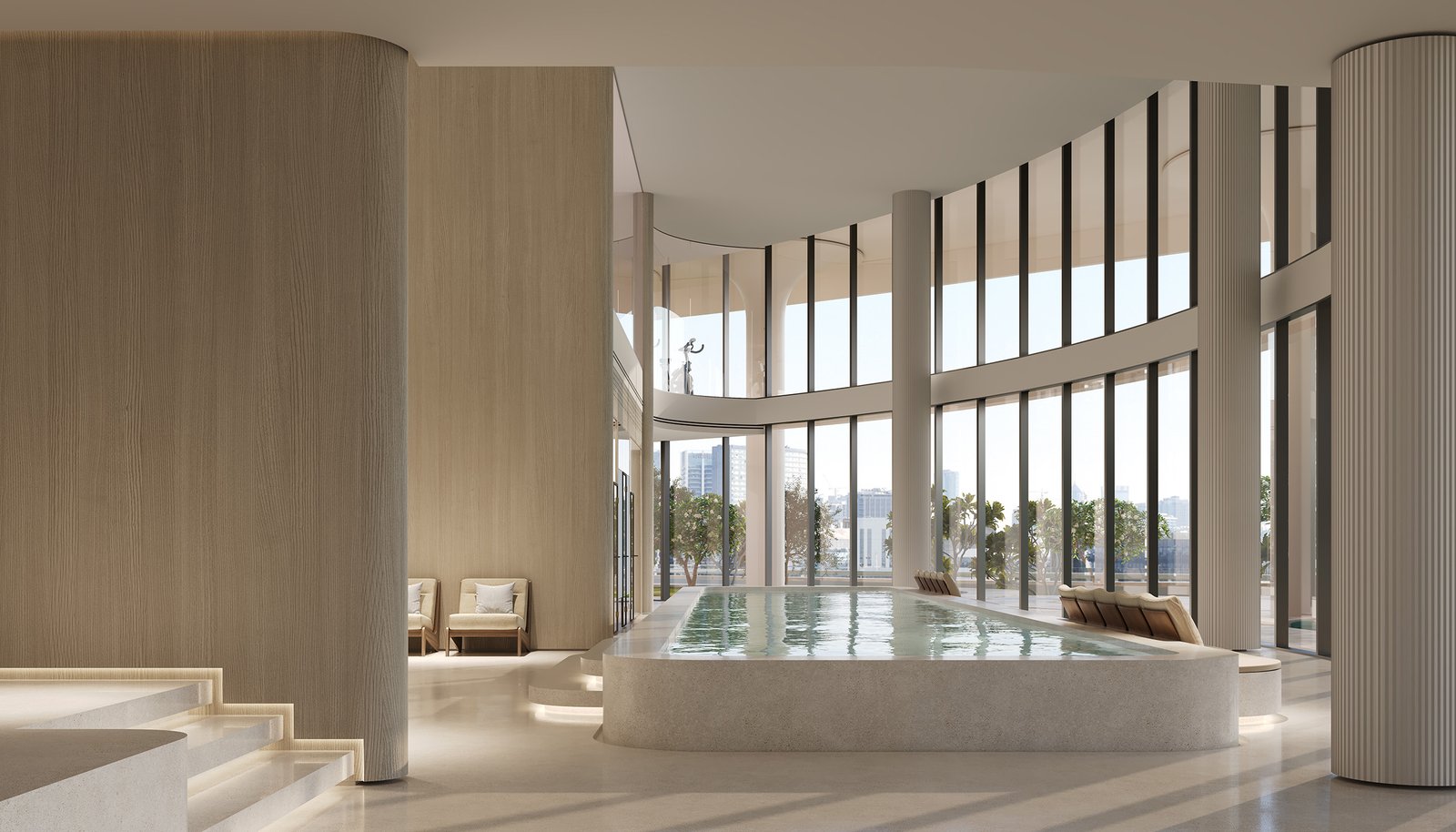 This one-of-a-kind complex stands out with private indoor pools in select units and cutting-edge Vortex Biotech VLED air technology for a healthier indoor environment. Designed with a signature curved façade, the centerpiece is a 33-ft cascading waterfall over a 2,153 sq. ft feature wall – a stunning statement of architectural excellence.