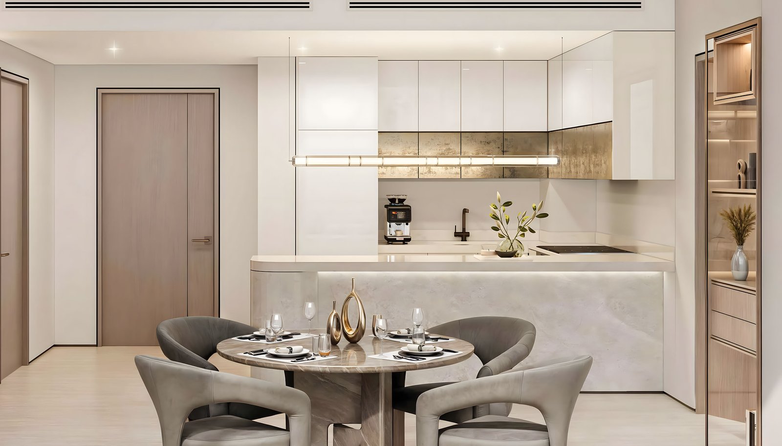 The project features 705 exclusive residences, including 1- and 2-bedroom apartments, as well as 3- and 5-bedroom penthouses with private pools. Designed for modern lifestyles, each home combines premium finishes, spacious layouts, and floor-to-ceiling windows that frame Dubai’s iconic skyline.