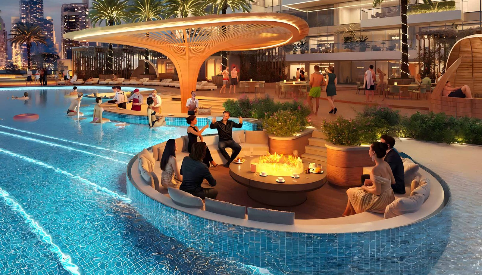 • Aurora pool with sunken seating
