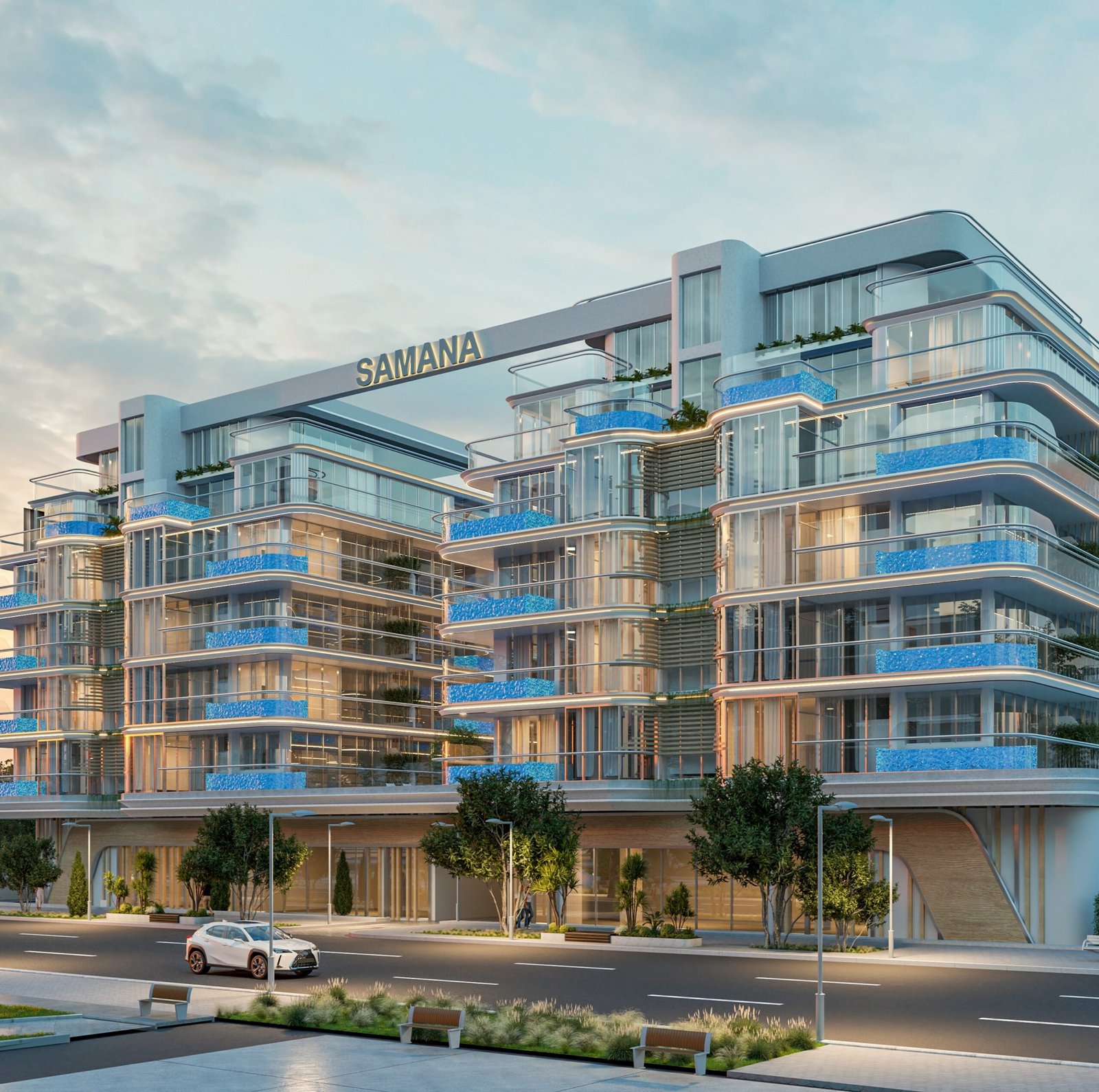 Samana Rome stands as a statement of refined architectural excellence, taking inspiration from the beauty and grandeur of ancient Rome while incorporating the functionality of modern Dubai living. The façade combines classical aesthetics with sleek modern lines, resulting in a structure that is both timeless and contemporary.