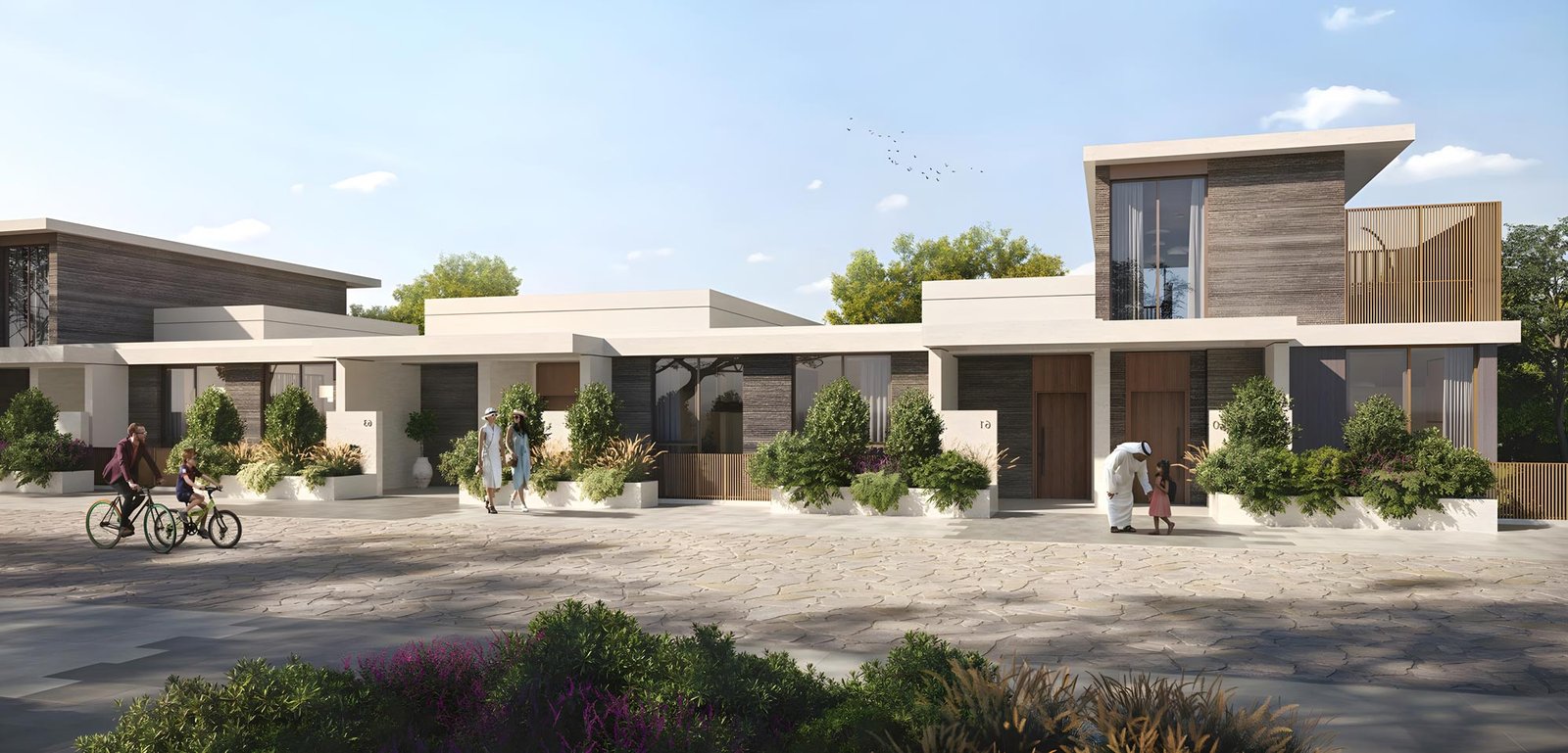 Shamsa 1 is a fully sustainable residential community. The homes are part of a pedestrian-focused layout, offering separate lanes for bicycles and e-scooters, along with car-free zones for improved safety and reduced noise pollution.