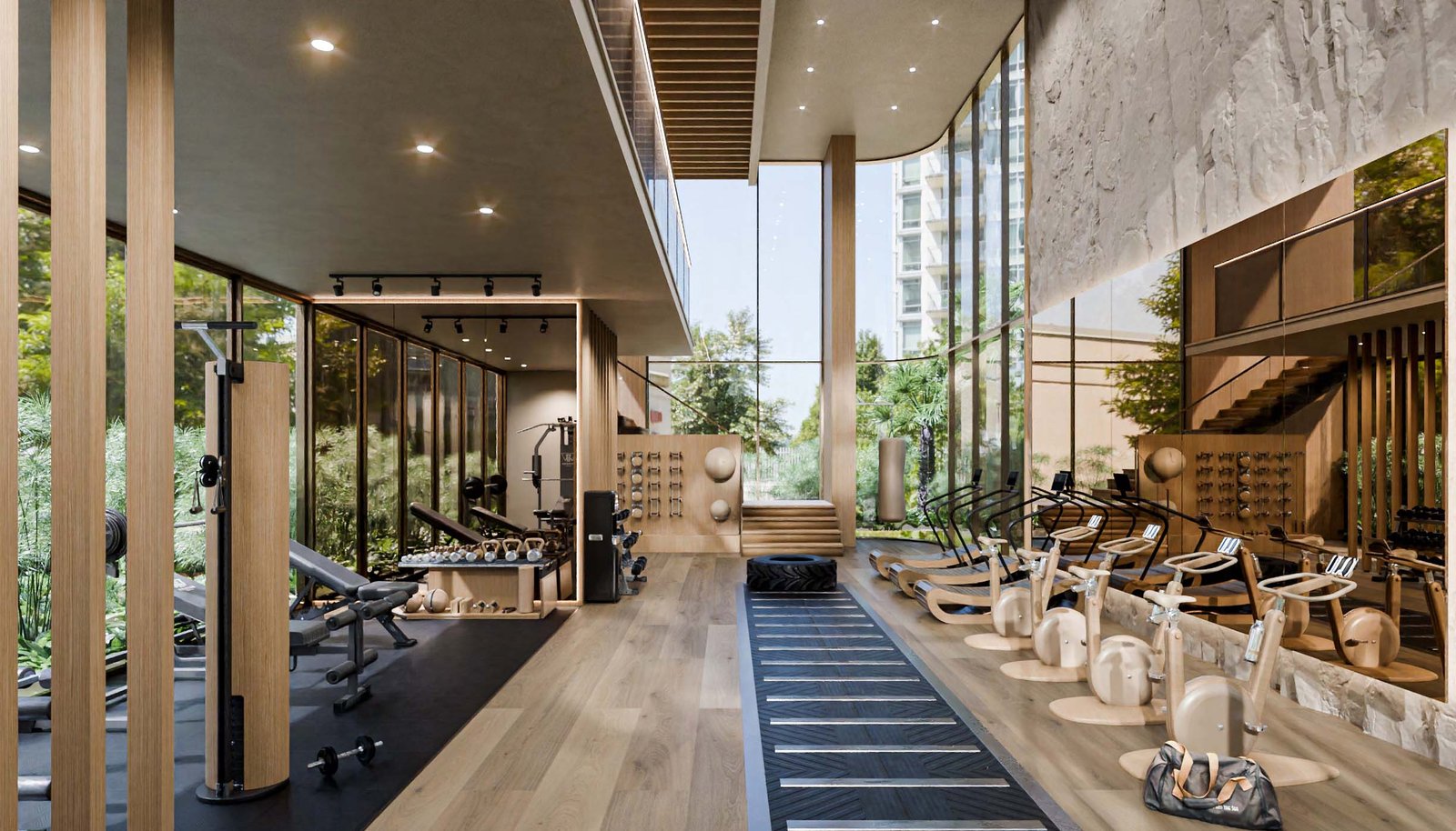 - Double-level gym and wellness terraces