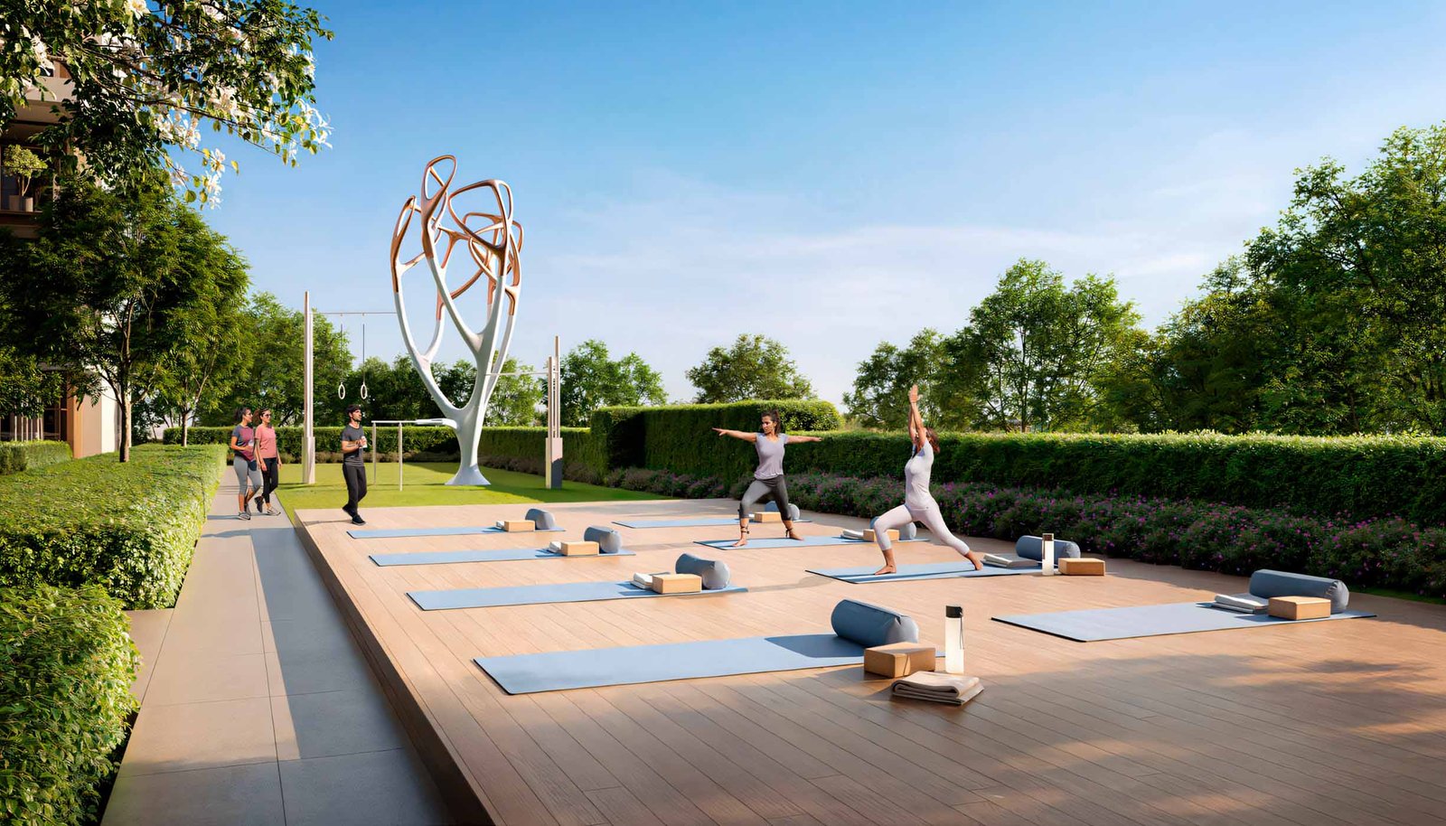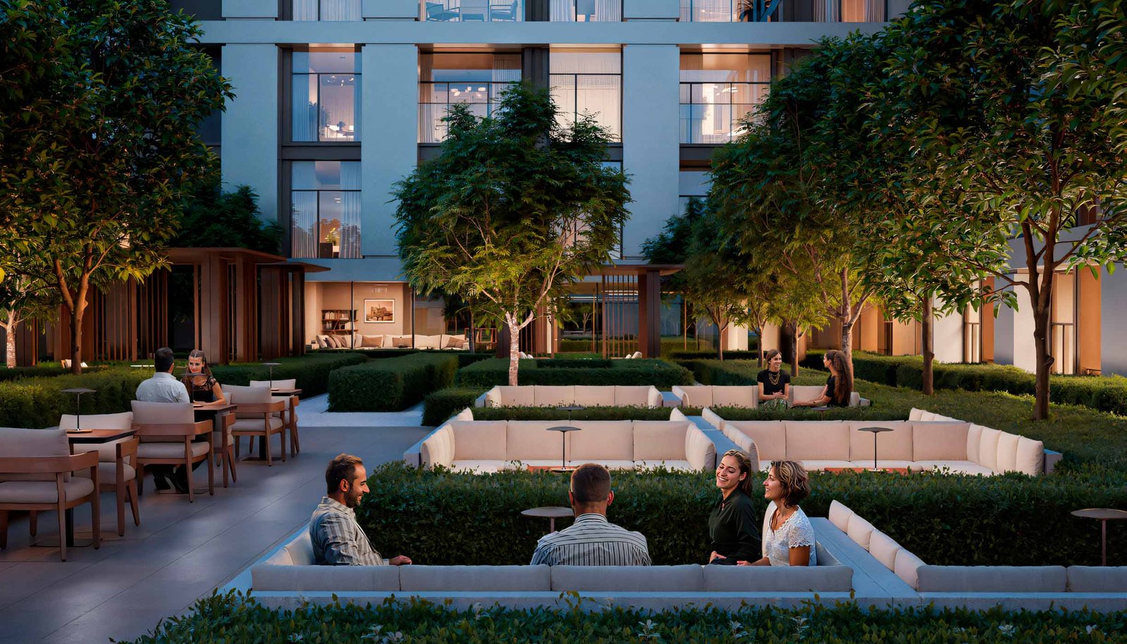 Surrounded by greenery, landscaped courtyards, and pedestrian-friendly walkways