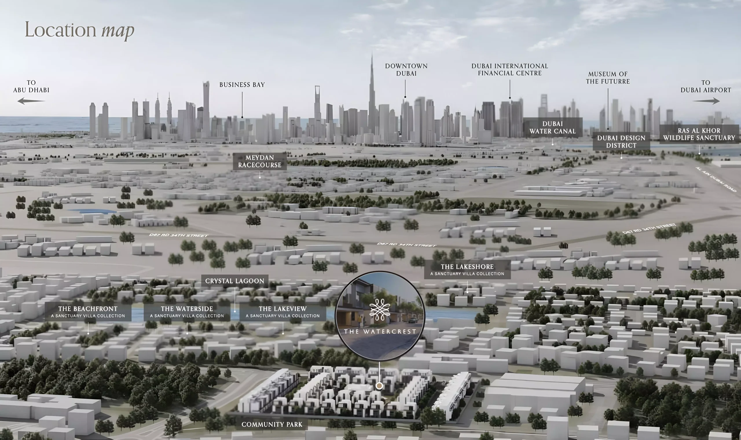 Situated in one of Dubai’s most sought-after communities, The Watercrest offers spacious homes, world-class amenities, and lush green landscapes—crafted to suit the lifestyle of modern families. With seamless connectivity to Downtown Dubai, top schools, hospitals, and retail hubs, this gated community combines convenience with elegance and wellness.