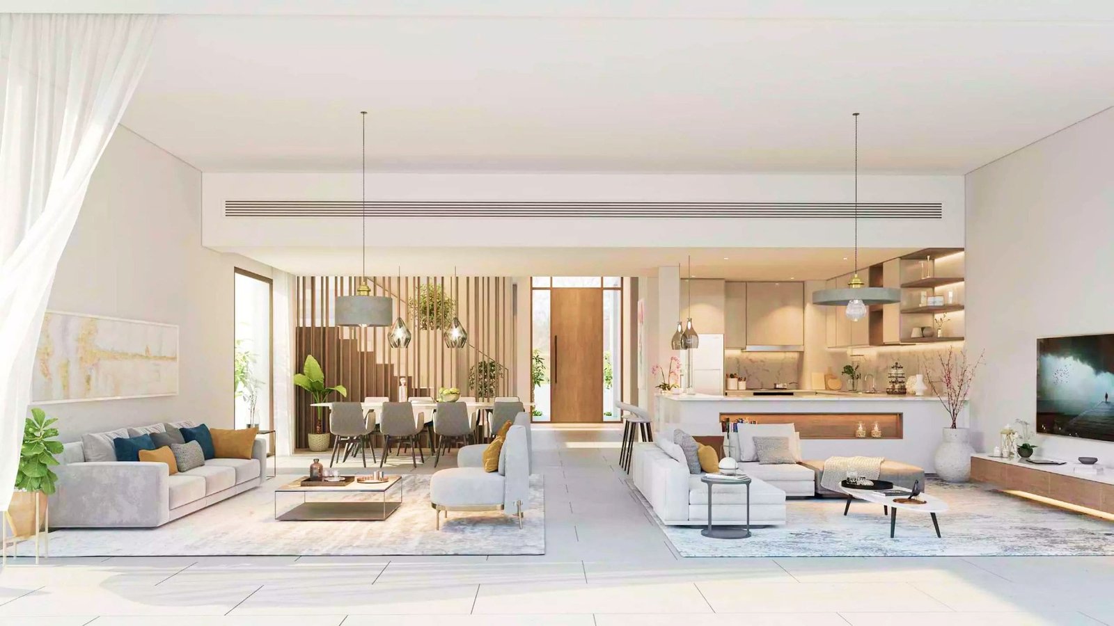 The villas range from 4,031 sq. ft. to 6,515 sq. ft., with prices starting from AED 3,400,000 (USD 920,000). Residences come with private pools, multiple lounges, open and closed kitchens, large balconies, and lush garden spaces.