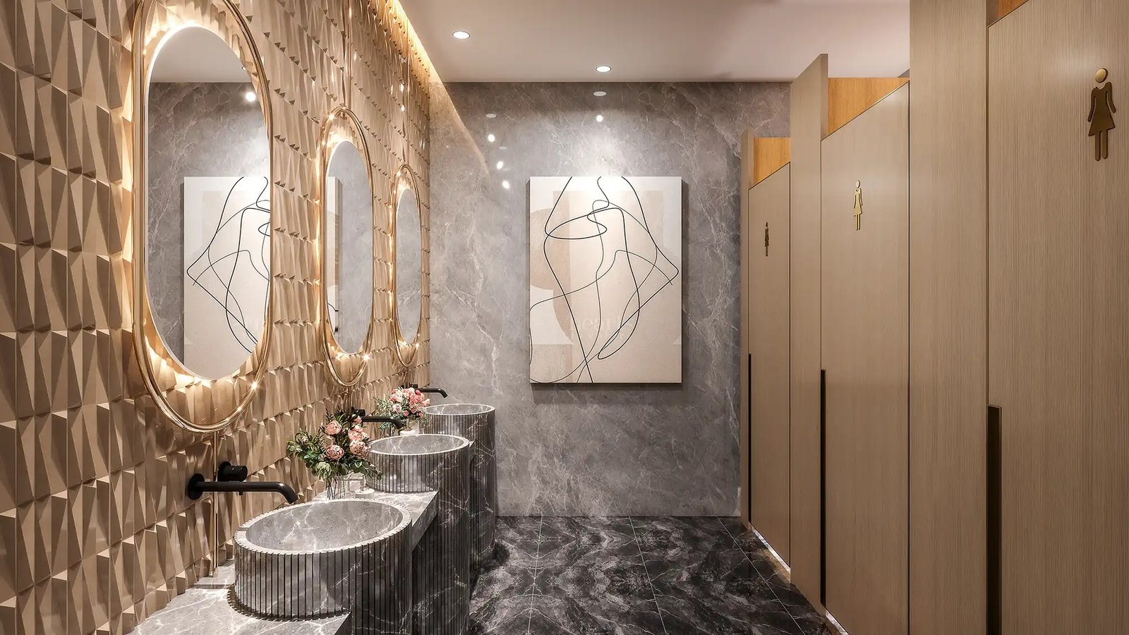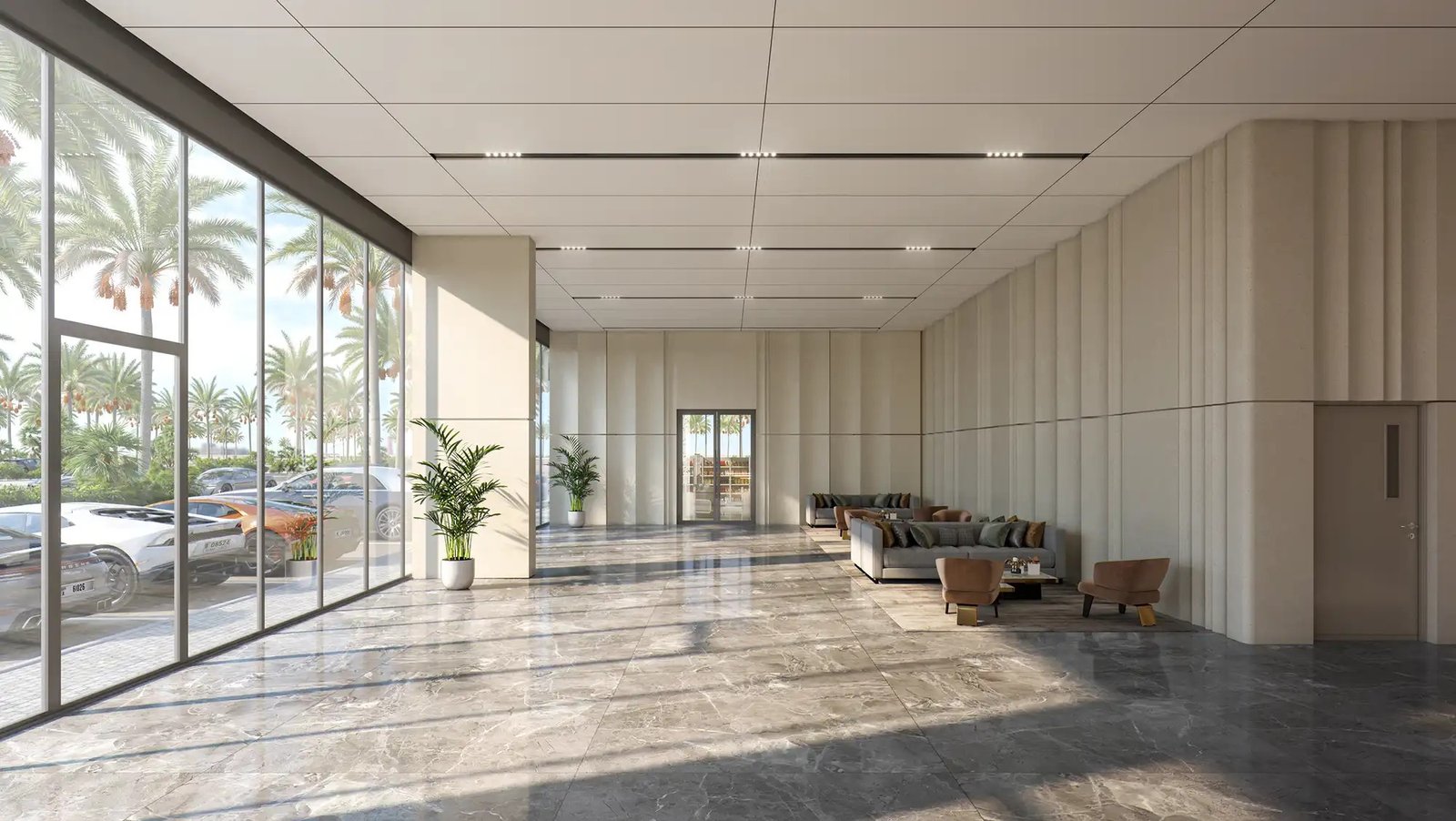 A luxurious entrance lobby with double-height ceilings creates an impressive first impression for visitors and clients.