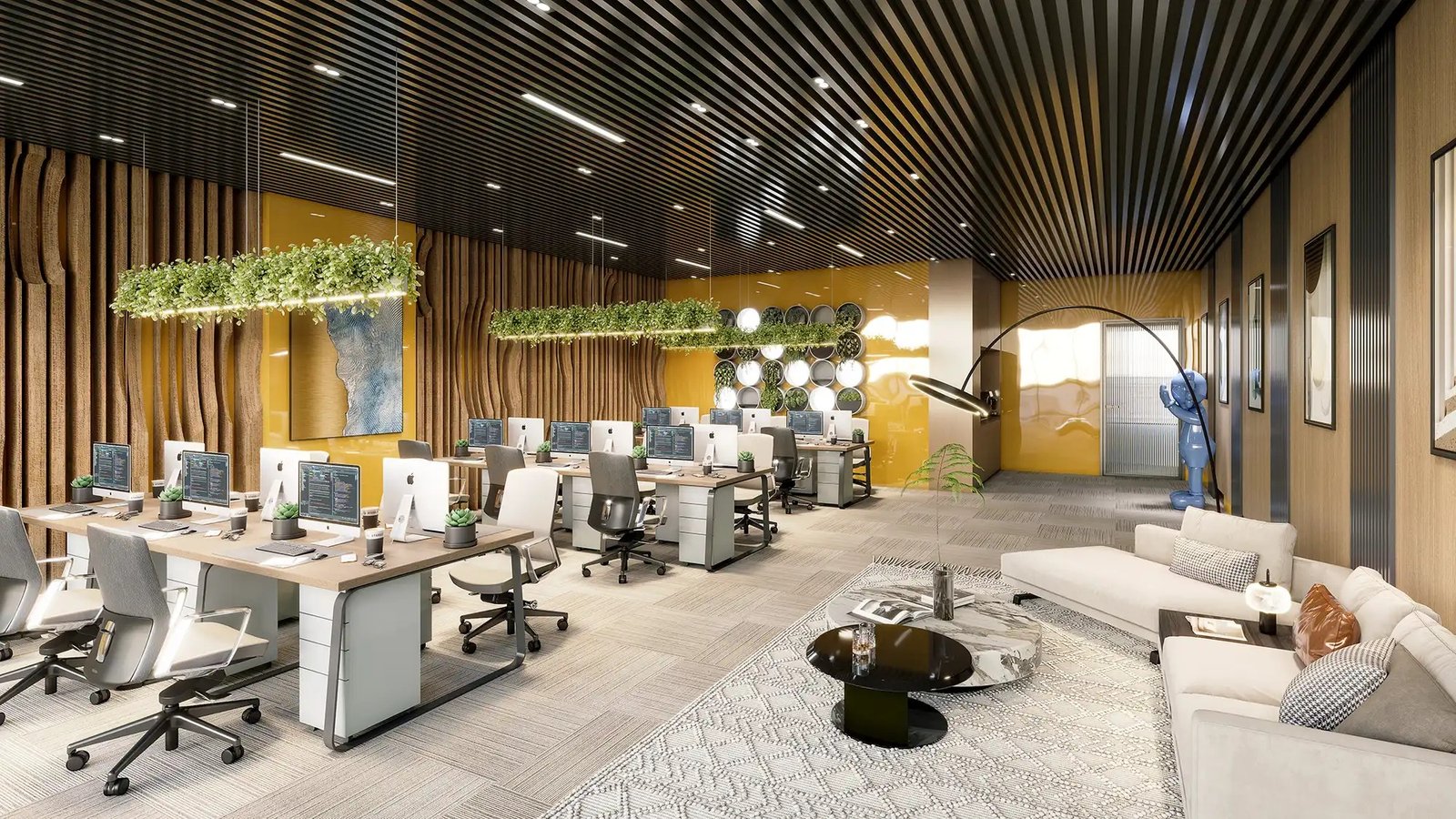 Designed for flexibility, the coworking zone caters to freelancers, startups, and teams that prefer a shared, vibrant work environment.