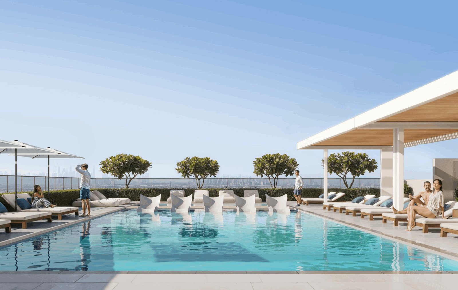 The project includes a premium swimming pool designed for leisure, fitness, and relaxation. With modern tiles and seating decks, residents enjoy a comfortable aquatic environment.
