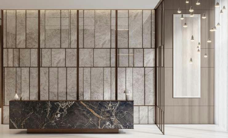 The reception lobby sets the tone with its serene atmosphere, serving as both an elegant entrance and a lounge for residents. Expansive layouts, large windows, and a muted color palette create a sense of openness and warmth. Kitchens are fully equipped, while bedrooms and living areas are planned to optimize both space and functionality.