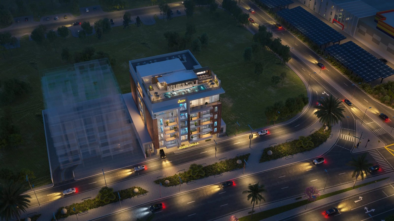 Designed with attention to detail, the apartments at White Opals by AIZN Developers feature open living areas, floor-to-ceiling windows, modern kitchens, elegant bathrooms, and functional layouts that support everyday living. The rooftop level introduces a resort-style lifestyle experience with an infinity pool, lounge areas, leisure spaces, and social zones perfect for relaxation and community gatherings.